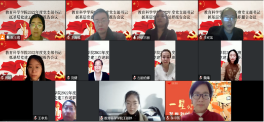1月14日晚,教育科学学院通过腾讯会议召开2022年度党支部书记抓基层党建工作述职报告会议。会议听取各党支部书记抓党建工作述职并进行现场评议,系统总结各党支部党建工作效果。学院院长刘健,党委副书记阿依古丽·阿布都热西提,各党支部书记、副书记参加会议,党委副书记阿依古丽·阿布都热西提主持会议,学院院长刘健作了总结讲话。